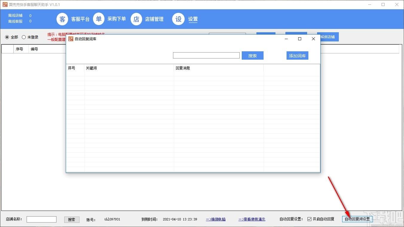 9、点击软件右下角的自动回复按钮可以对自动回复词库话术添加