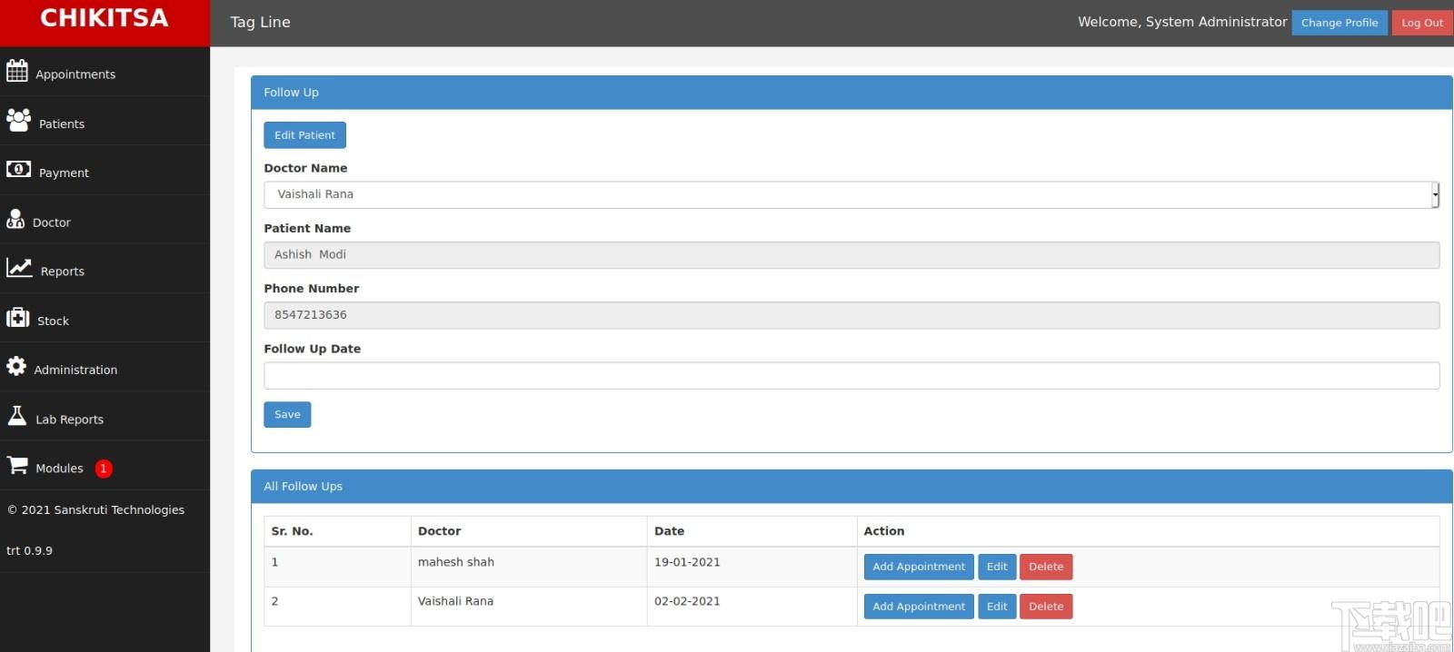 Chikitsa是一款功能丰富齐全、简单专业的患者管理系统,内置维持病人访问、诊断和治疗史、患者联系方式、预约医生、保持预约状态、生成账单、打印收据等多种功能,可以帮助医生高效便捷地跟踪您的病人,保存病人的联系信息,同时可为患者提供预约、打印费用收据等功能;Chikitsa界面简洁直观、操作简单便捷,具有可自定义选项的完整网站,允许患者预订约会并查看他们的记录,支持实验室测试费用和报告管理,支持药店维护药品库存和采购记录等功能,可以出售药品给患者,非常方便实用。