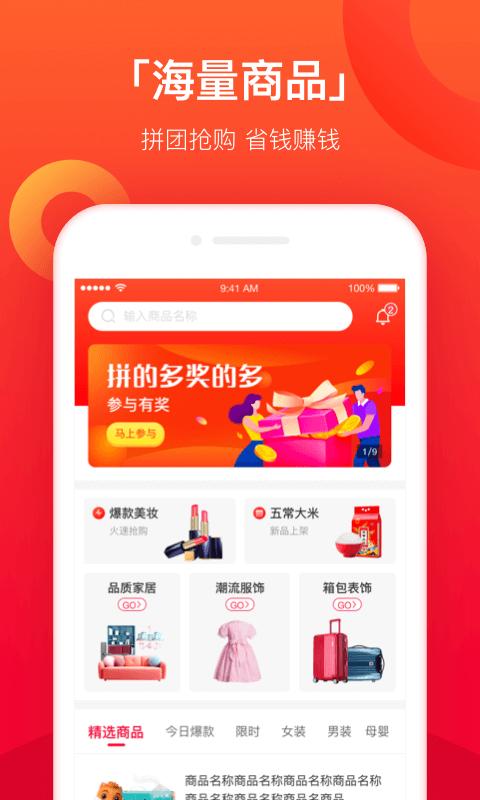 2、海量商品,拼团抢购,省钱赚钱,购物轻松;